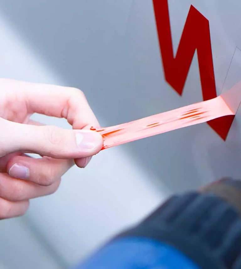 Nous assurons également la dépose d’anciens adhésifs, le retrait des résidus de colle et la remise en état des surfaces si nécessaire, avant la mise en place d’un nouveau marquage.